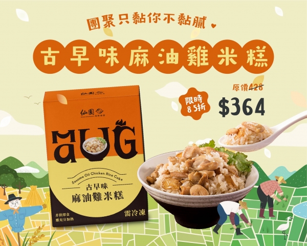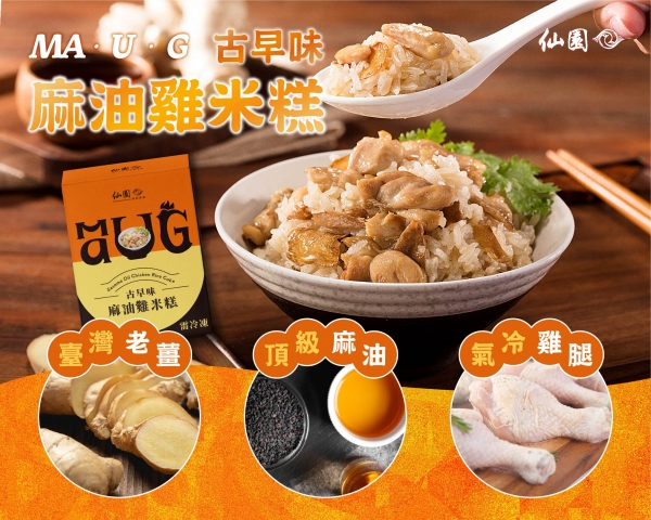 商品成份:長糯米、雞腿肉、麻油(黑芝麻)、老薑、米酒、鹽、糖、白胡椒、L-麩酸鈉