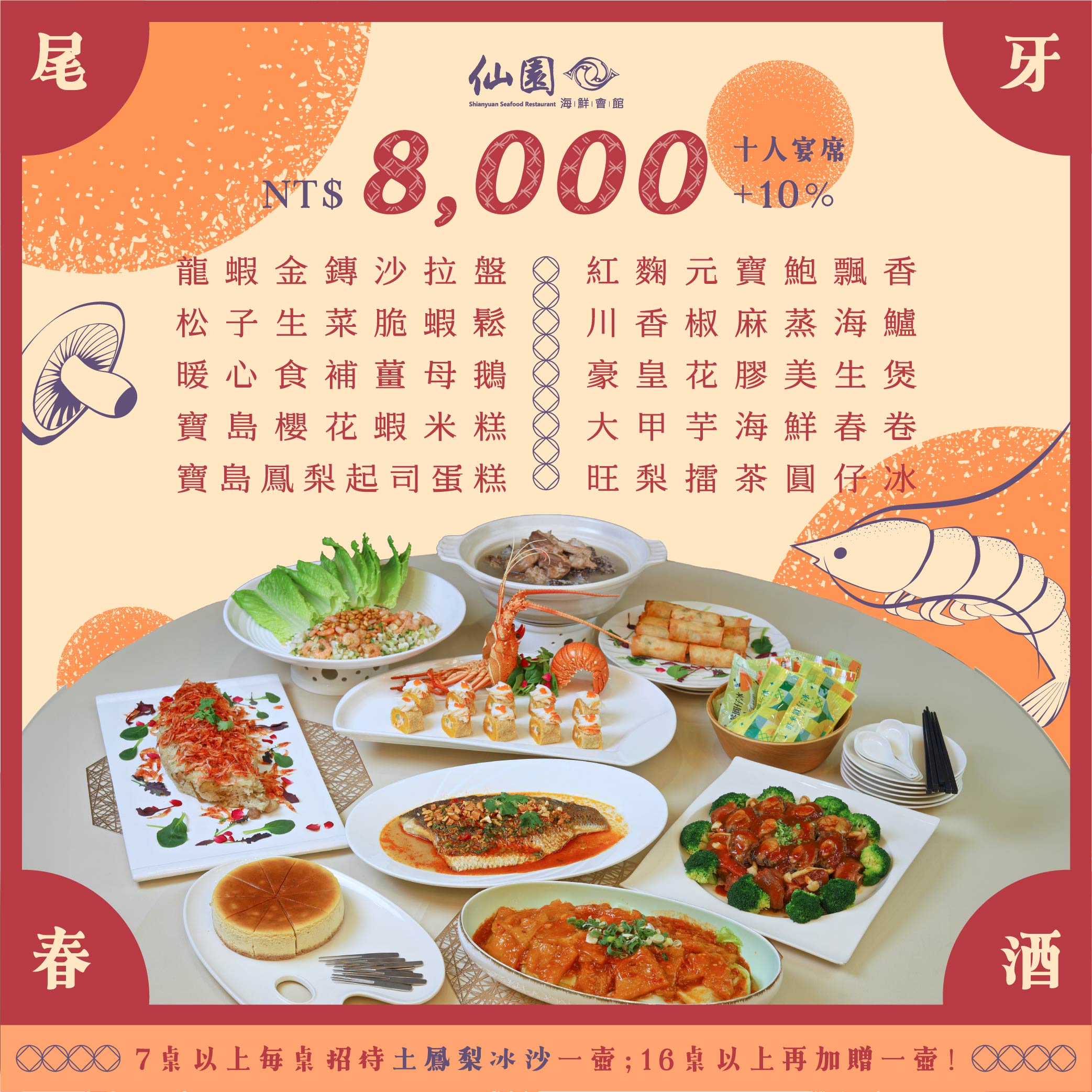 ✧宴席專案|$𝟴,𝟬𝟬𝟬起/每桌十人份